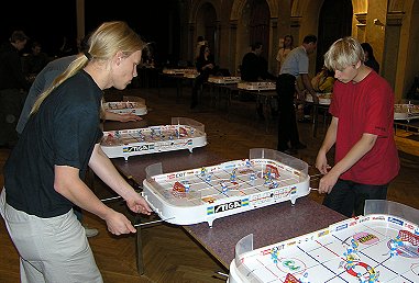 Kahteen lohkoon siis mentiin, niin kuin jo niin monesti aiemminkin. A-lohkossa jyräsivät nuoret sankarit Käsmä ja Moilanen, jotka molemmat hävisivät ainoastaan yhden matsin. Käsmän hurjasta vireestä kertonee se, että hän teki alkupeleissä 14 maalia enemmän kuin lohkon toiseksi kovin maalitykki. Naapurilohkossa kärkipaikalle kiilasi A. Antinkaapo, ja toiseksi S. Supperi joka vielä pelihommien ohessa kerkesi hoitamaan toimitsijan virkaa.
