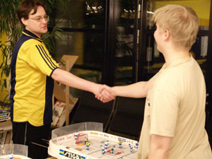 Finaalin ensimmäisessä pelissä Arto näytti olevan niskan päällä, mutta Jari tuli aina tasoihin ja lopulta ohi viime hetken maalilla. Toinen peli oli ehkä hieman selvemmin Jarin heiniä. Kultamitalistin menestys on jo sitä luokkaa, että huhujen mukaan Kaijonharjun keskustaan ollaan suunnittelemassa Jarille omaa patsasta. Luultavasti patsas sijoitetaan kirjaston apinapatsaan tilalle, niin paljon positiivista julkisuutta ovat Sahlgrenin peliotteet tuoneet jo muutenkin kuuluisalle kaupunginosalle.