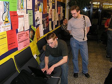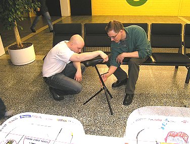 Markus Niiranen (kuvassa vasemmalla) hoiti tulospalvelun Sami Supperin poissaollessa. Mukana nähtiin myös Tomi Rahkolin (oik.), jonka peli kulkikin hyvin. Alkusarjassa hän sijoittui kolmanneksi ja aiheutti B-lohkon voittajalle Iikka Ala-Aholle tämän ainoan tappion, lukemin 4-2. Toiseksi lohkossa sijoittui Arto Käsmä, jonka ainoa tappio puolestaan tuli Iikalle tylyin 0-6 -numeroin.
